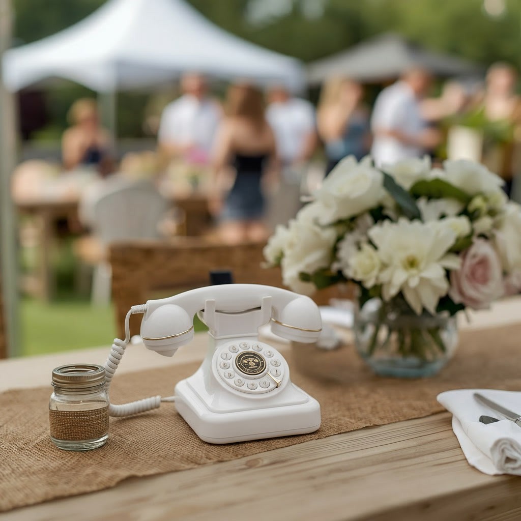 Guests pick up the receiver of a classic telephone